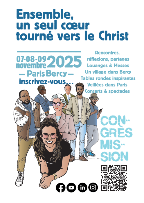 Le Congrès Mission rassemble des milliers de chrétiens une fois par an pour réfléchir à la question toujours nouvelle : « Comment proposer l’Évangile à la société actuelle ? ”. Chacun est invité à participer à des ateliers, des conférences, des tables rondes, aux messes du jour, à des concerts, des spectacles, un village de stands, des buvettes, et à partager sa foi… Pour cela, rendez-vous les 7-8-9 novembre 2025, à l’Accor Arena de Bercy.