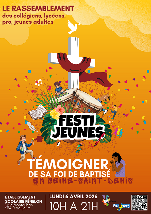 Collégien, lycéen ou jeune adulte ? Le pôle jeunes t’invite à un grand rassemblement, le lundi de Pâques, pour célébrer ensemble la résurrection du Seigneur ! Rendez-vous, lundi 6 avril 2026, de 10h à 21h, à l’établissement scolaire Fénelon, de Vaujours, pour une journée exceptionnelle !