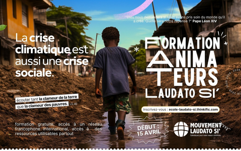 Le Mouvement Laudat Si’ propose à tous une formation. Si vous cherchez comment agir face à la crise écologique et sociale, soutenu par la foi et en lien avec un réseau de personnes inspirantes ? La formation d’animateurs Laudat Si’ est faite pour vous ! Cette formation gratuite et en ligne est organisée par le Mouvement Laudato Si’, un mouvement catholique international présent dans 160 pays. Elle vous donnera les repères scientifiques et théologiques et des outils concrets pour agir avec 4 webinaires à suivre en direct ou en différé et des ressources utilisables partout et vous permettra de rencontrer des personnes francophones du monde entier.