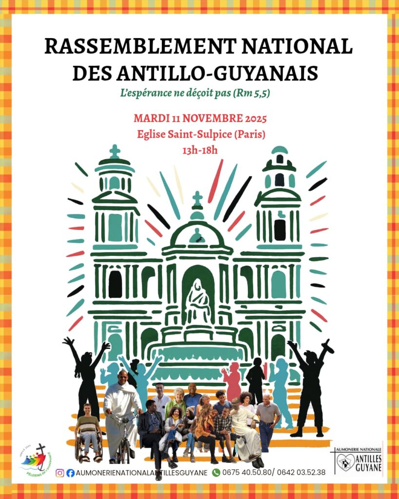 Chaque année, l’Aumônerie Nationale des Antilles-Guyane organise une rencontre des Antillais-Guyanais, à l’église Saint-Sulpice. Cette année, cette rencontre aura lieu, mardi 11 novembre 2025, de 13h00 à 18h00.