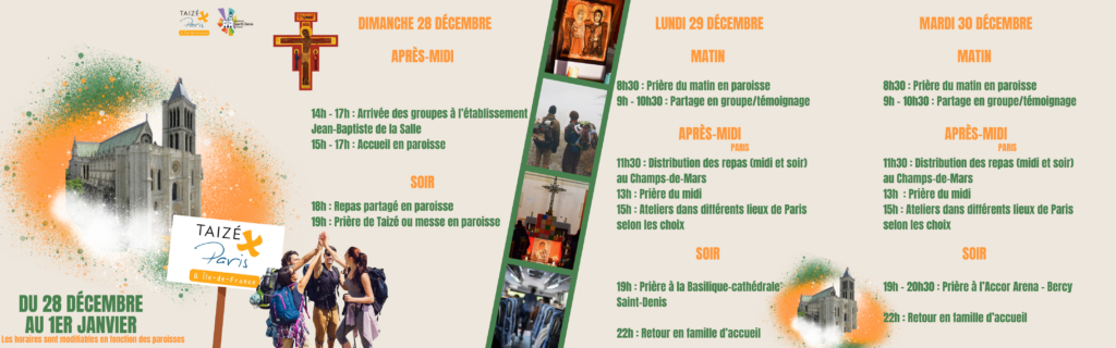 👉 Pour découvrir le programme détaillé de la Rencontre Européenne de Taizé 2025, consulter ce site : https://taizeparisidf.fr/fr