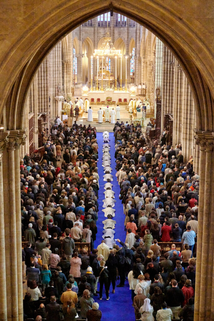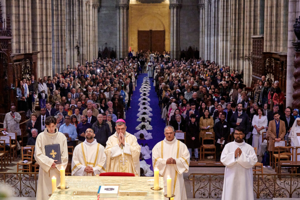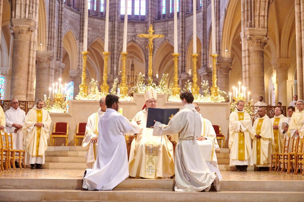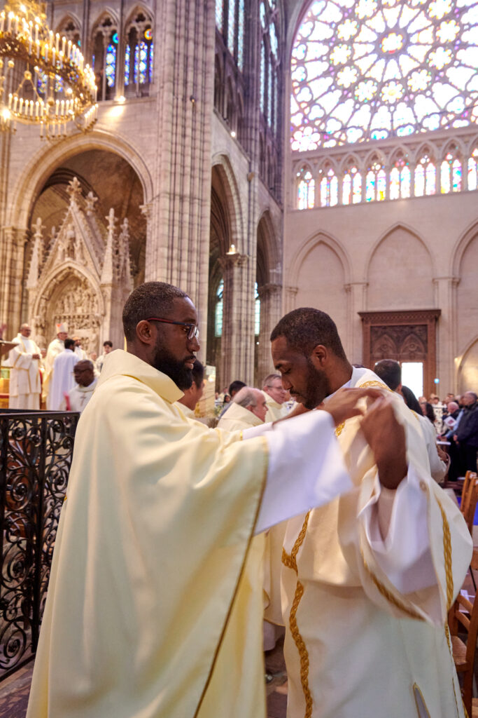 L’assemblée réunie autour d’eux a fait l’expérience d’une célébration liturgique solennelle et marquante par la beauté des processions, gestes, chants, vêtements liturgiques et splendeur architecturale de la Basilique cathédrale Saint-Denis. Unis dans la prière, les familles, les amis des ordinands et les fidèles de Seine-Saint-Denis rassemblés ont vécu une expérience forte, tant esthétique que spirituelle. Deo gratias !