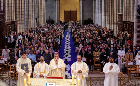 Samedi 11 avril 2026, en la Basilique-cathédrale Saint-Denis, Mgr Étienne Guillet a présidé l’ordination diaconale et presbytérale de dix-sept compagnons jésuites et d’un compagnon de l’Ordre hospitalier de Saint-Jean-de-Dieu. Grande joie pour notre diocèse de vivre une célébration aussi spectaculaire, dans le cadre non moins majestueux de notre Basilique.