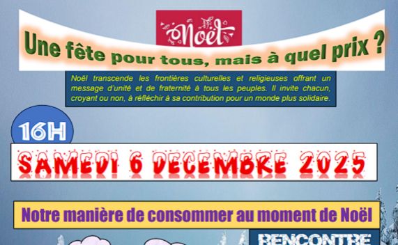 L’ACO (l’Action Catholique Ouvrière) 93 nord organise une soirée débat sur notre manière de consommer au moment de Noël, samedi 6 décembre 2025, à 19h30, dans la salle de la Mutualité de l’église Sainte-Jeanne d’Arc, de Saint-Denis.
